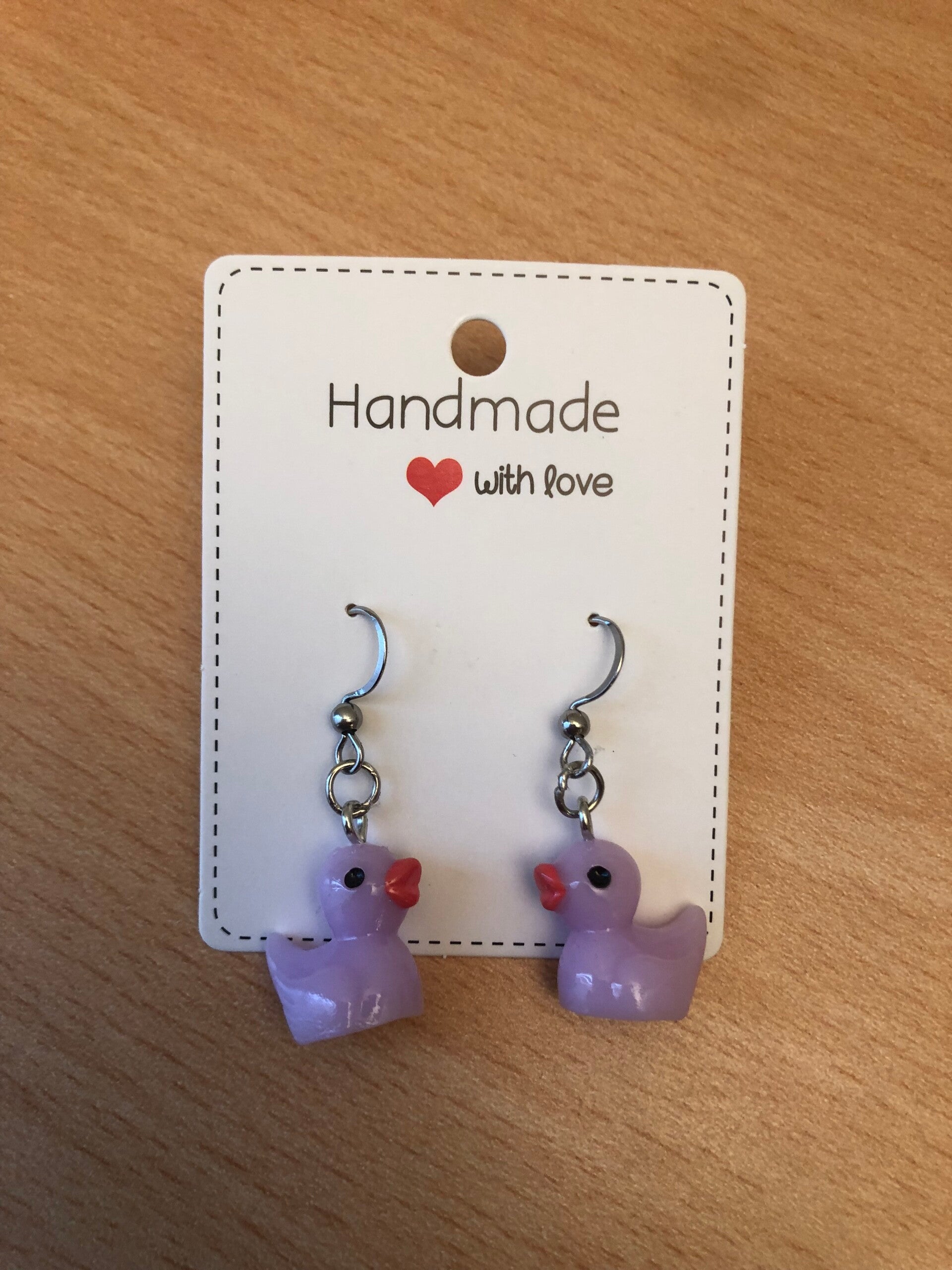 Oorbellen badeendje licht paars.