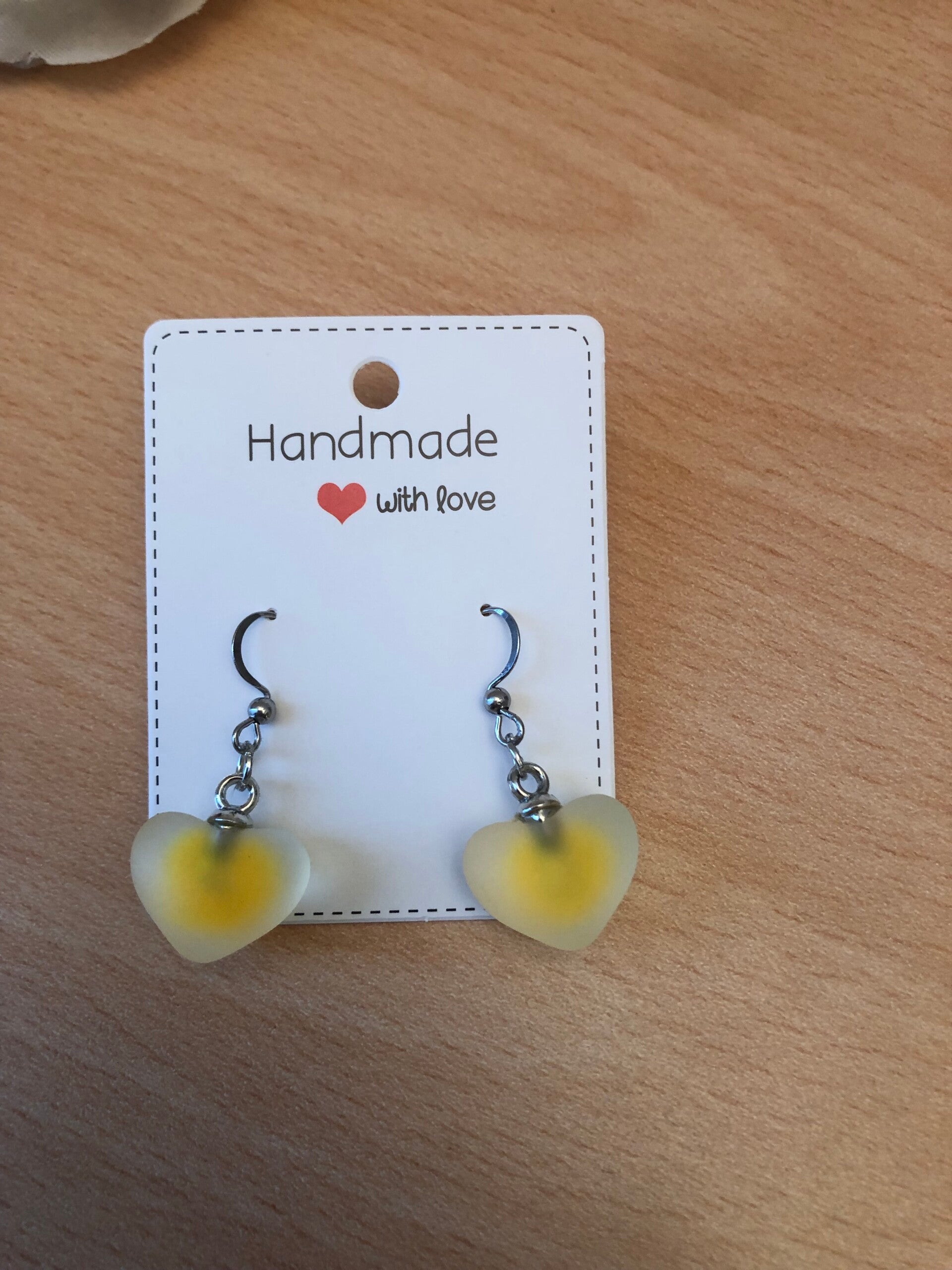 Oorbellen ‘Frosted ‘ hart geel
