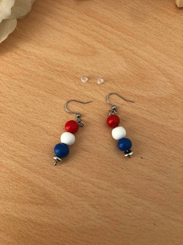 ✔️ Houten kralen rood-wit-blauw
