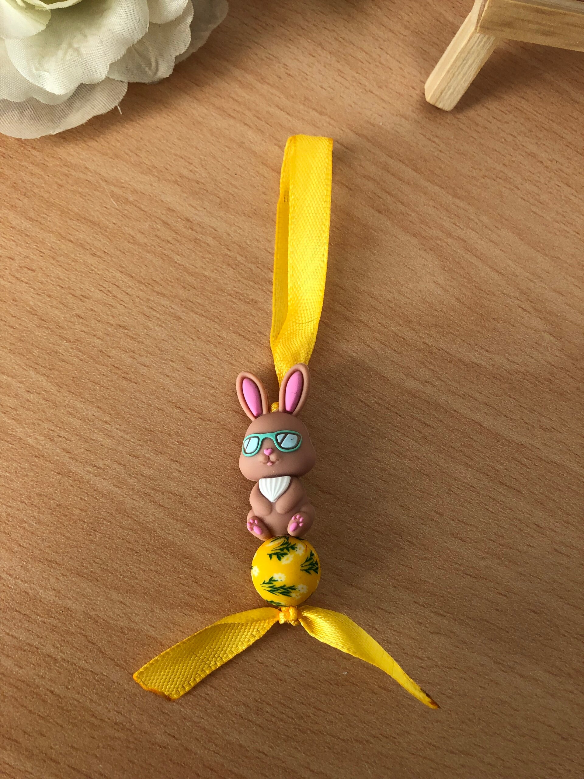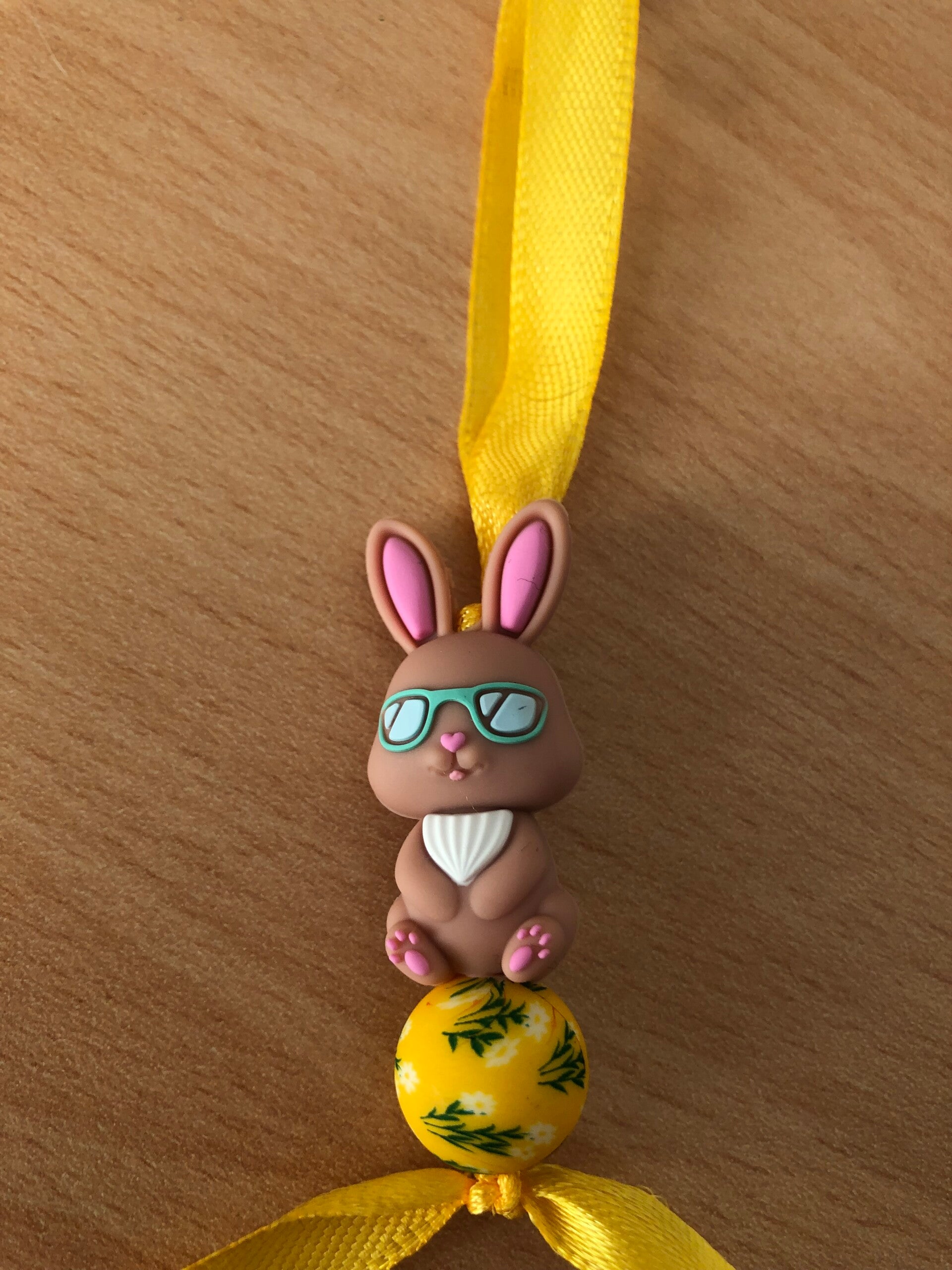 Superleuke hanger van een siliconen Paashaas. Met daaronder een siliconenkraal met paasmotief.